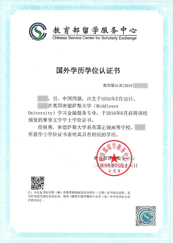 5.教育部留學(xué)服務(wù)中心學(xué)歷學(xué)位證明書樣張1;