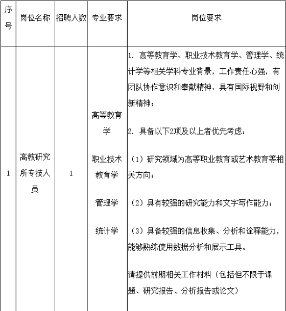 因?qū)W院綜合教育改革發(fā)展和教學(xué)需要,根據(jù)《上海市事業(yè)單位公開招聘人員辦法》(滬人社規(guī)〔2019〕15號(hào))文件要求,按照公開、平等、競爭、擇優(yōu)的原則,現(xiàn)面向社會(huì)公開招聘有志于投身高等職業(yè)教育的人才。