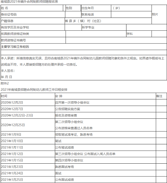 1.《南城縣2021年編外合同制教師招聘報名表》