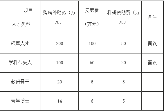 1.校院將給予符合校院《人才引進暫行辦法》規(guī)定類型人才條件的全職引進人員提供相應(yīng)的購房補助款、安家費(稅前,人民幣)和科研資助費: