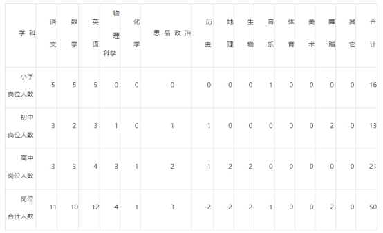 二、招聘學(xué)科及人數(shù)
