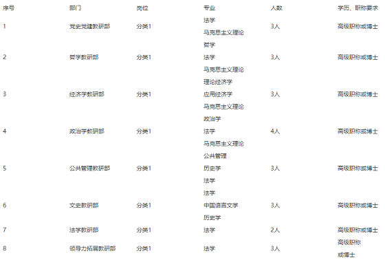 2.報名方式:網上報名。應聘人員登錄中共廣西區(qū)委黨校(廣西行政學院)或相關網站,下載并如實、正確填寫《中共廣西區(qū)委黨校(廣西行政學院)應聘人員情況登記表》(詳見附件),填寫完畢后將表格及身份證復印件、學歷學位證書(歷屆生提供)、相關專業(yè)資格證書、1篇科研成果代表作及完整的科研成果目錄電子版或掃描件發(fā)至gxdxgkzp@gxdx.gov.cn。郵件須附彩色全身照片,并在郵件主題及附件注明“應聘崗位+姓名”,如“哲學教研部教師+張三”。如應聘人員進入考試(考核),我校(院)組織人事處工作人員將電話通知。應聘人員每人限報一個崗位。