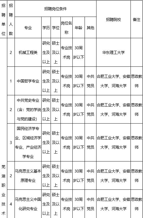 2021年蕪湖職業(yè)技術學院赴全國重點院校公開招聘緊缺專業(yè)應屆畢業(yè)生計劃