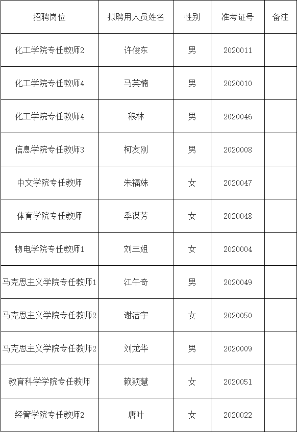 根據(jù)《湖南理工學(xué)院2020年公開招聘公告》及有關(guān)規(guī)定,經(jīng)報(bào)名、資格審查、考核、考察、體檢等程序,經(jīng)湖南理工學(xué)院人才工作領(lǐng)導(dǎo)小組集體研究,確定許俊東等23名同志為2020年湖南理工學(xué)院公開招聘擬聘用人選,現(xiàn)予以公示。