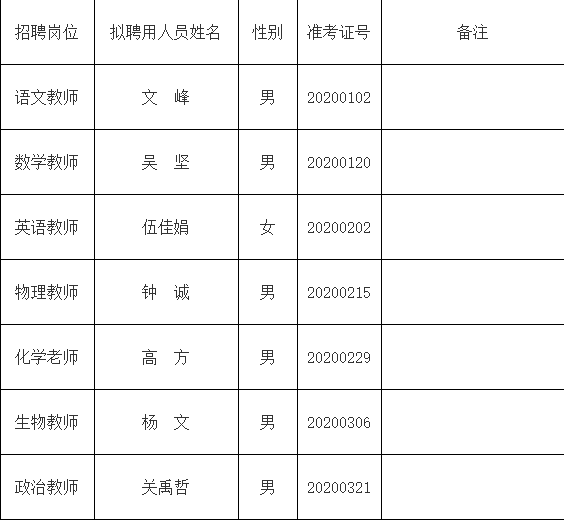 根據(jù)《湖南省長沙市第一中學(xué)2020年公開招聘公告》及有關(guān)規(guī)定,經(jīng)報名、資格審查、筆試、面試、實操、體檢、考察等程序,經(jīng)長沙市第一中學(xué)公開招聘領(lǐng)導(dǎo)小組研究,確定文峰等7名同志為2020年湖南省長沙市第一中學(xué)公開招聘擬聘用人選,現(xiàn)予以公示。