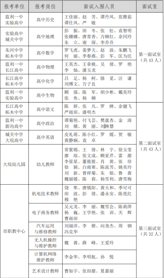 本次監(jiān)利市2020年度教育系統(tǒng)事業(yè)單位公開招聘面試入圍人員共計(jì)118名。