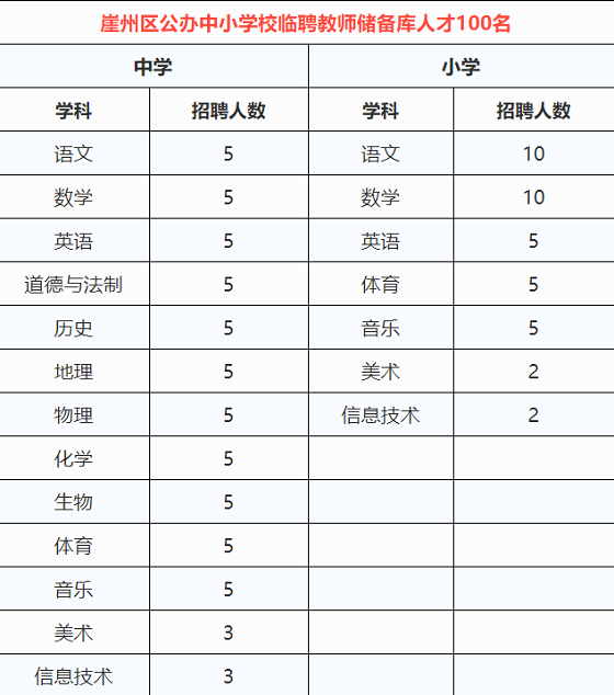 面向社會公開招考公辦中小學校臨聘教師儲備庫人才100名。招聘的具體崗位詳見《2020年三亞市崖州區(qū)公辦中小學校臨聘教師儲備庫人才崗位職數(shù)表》(見附件1)。