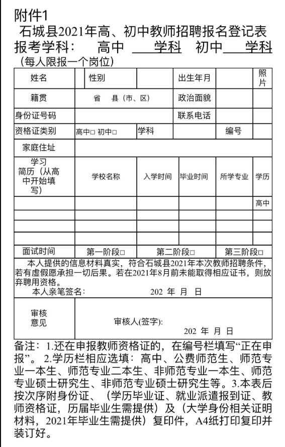 溫馨提示:若附件無法自行填寫打印可資格初審時現場填寫。