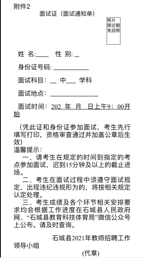 (二)招聘所需經費由縣財政核撥。不收取考生報名面試費。