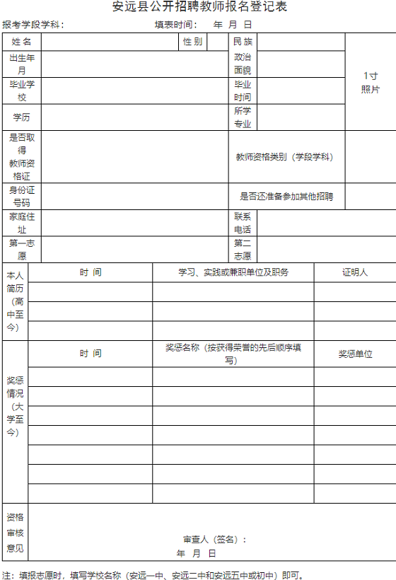 2.安遠縣公開招聘教師報名登記表