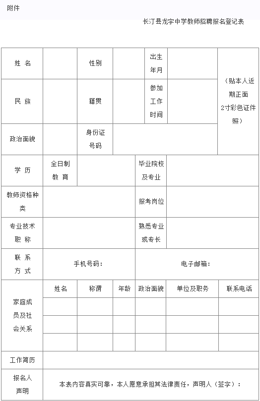 現(xiàn)場報名、網(wǎng)絡(luò)報名均可,將報名登記表(見附表)、身份證、職稱證、學(xué)歷學(xué)位證、教師資格證、主要榮譽證等相關(guān)材料的掃描件提交龍宇中學(xué)辦公室或發(fā)到郵箱lyzx4532@163.com。報名截止時間為2021年1月15日。
