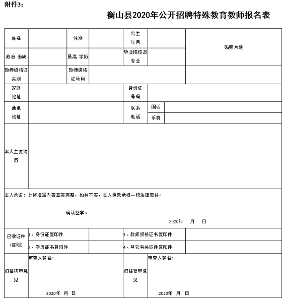 3.衡山縣2020年公開(kāi)招聘特殊教育教師報(bào)名表