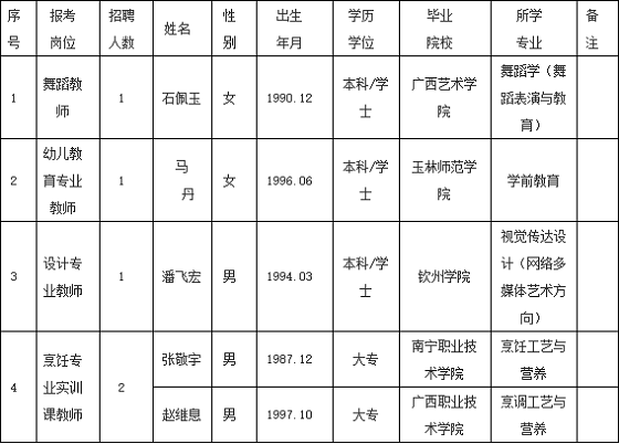 廣西新聞出版技工學校2020年度公開招聘擬聘用人員名單