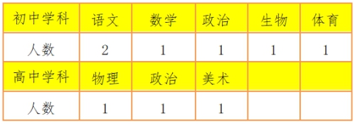 計劃招聘初高中合計9人,具體學(xué)科人數(shù)詳見下表: