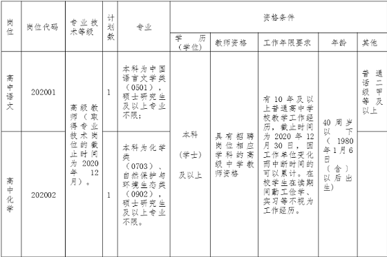 為進一步加強我校教師隊伍建設(shè),優(yōu)化師資結(jié)構(gòu),特面向社會公開招聘高中語文、化學(xué)教師崗位高級職稱教師各1名。根據(jù)《事業(yè)單位人事管理條例》(第652號國務(wù)院令)、《事業(yè)單位公開招聘人員暫行規(guī)定》(原人事部第6號令)、《安徽省事業(yè)單位公開招聘工作人員暫行辦法(試行)》(皖人社發(fā)〔2010〕78號)等文件精神,現(xiàn)將有關(guān)事項公告如下。
