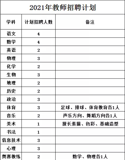 3、應(yīng)聘教師須是2021年應(yīng)屆大學(xué)畢業(yè)生。應(yīng)聘相應(yīng)崗位者須在2021年8月前取得以下證書:二本以上本科畢業(yè)學(xué)歷證書且具有學(xué)士及以上學(xué)位證書、初級中學(xué)及以上相應(yīng)學(xué)科教師資格證書、普通話二乙以上證書,其中語文、英語教師普通話要求二甲以上。