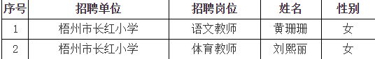 長(zhǎng)洲區(qū)2020年公開考試招聘教師擬聘用人員名單(第四批)
