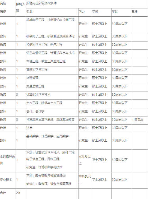 教師需具備研究生及以上學(xué)歷(碩士及以上學(xué)位),其他人員需具備本科及以上學(xué)歷(學(xué)士及以上學(xué)位),且符合以下條件: