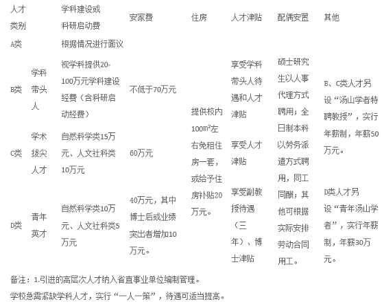 學(xué)校為高層次引進(jìn)人才提供國家規(guī)定的工資、福利、保險(xiǎn)等待遇,同時(shí)首聘期內(nèi)提供住房、安家費(fèi)、科研啟動(dòng)經(jīng)費(fèi)及平臺(tái)建設(shè)等待遇和條件。具體待遇如下: