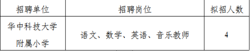 華中科技大學附屬小學位于大學主校區(qū)校園內(nèi),是武漢市示范學校、武漢市素質(zhì)教育特色學校,全國科學教育、信息技術(shù)教育等先進單位和實驗基地。因工作需要,現(xiàn)面向社會公開招聘小學教師4人。