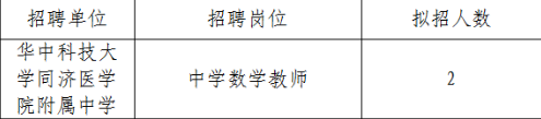 華中科技大學(xué)同濟醫(yī)學(xué)院附屬中學(xué)是武漢市“素質(zhì)教育特色學(xué)!薄⑽錆h市“十佳書香校園”,多年來教育教學(xué)質(zhì)量穩(wěn)居全市前列。因工作需要,現(xiàn)面向社會公開招聘骨干中學(xué)教師共2人。