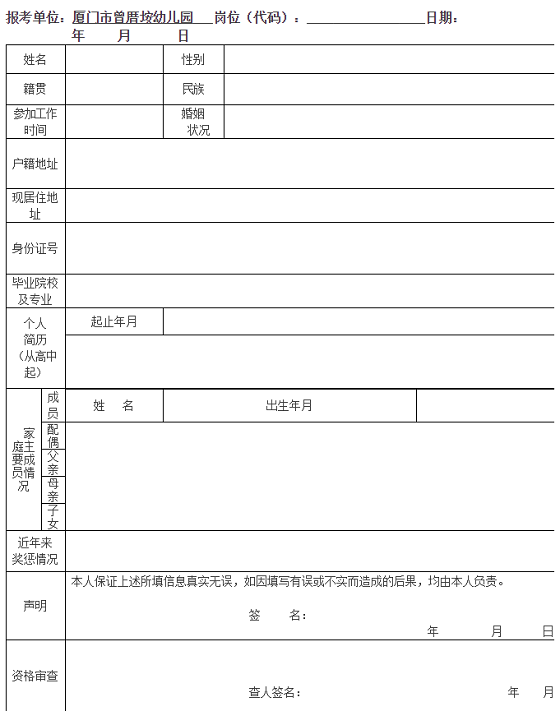 1.報名結(jié)束后由廈門市曾厝垵幼兒園對應(yīng)聘人員的報名資格進行初步審查。