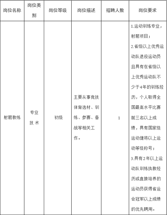 為做好山東省第25屆運動會備戰(zhàn)參賽工作,推動日照市競技體育水平不斷提高,經(jīng)研究決定,市體育局所屬事業(yè)單位市體育運動學校面向社會公開招聘射箭教練員1名,F(xiàn)將有關(guān)事項公告如下: