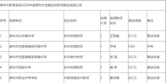 2020年湖南常德津市市教育系統(tǒng)選調(diào)市外在編在崗教師面試成績公告
