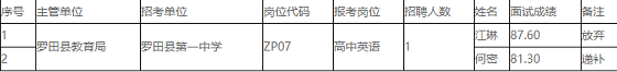 根據(jù)《我選湖北.夢圓黃岡羅田縣事業(yè)單位2020年公開招聘高層次人才公告》要求,在考核程序中,江琳因個人原因放棄聘用資格,擬遞補何密進入體檢、考核,現(xiàn)將遞補人員予以公告