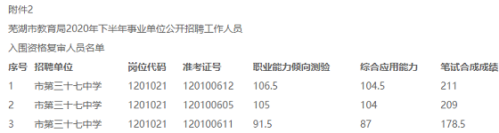 2、蕪湖市教育局2020年下半年事業(yè)單位公開招聘工作人員入圍資格復(fù)審人員名單