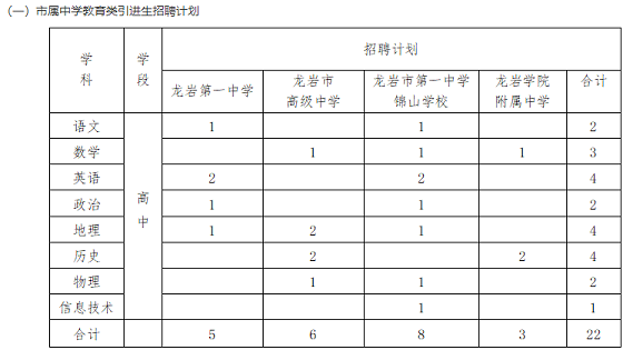 詳見《龍巖市2021年教育類引進(jìn)生招聘公告》(附件1)。
