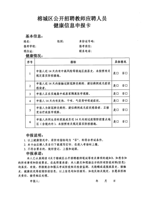 榕城區(qū)公開(kāi)招聘教師應(yīng)聘人員健康信息申報(bào)卡.doc