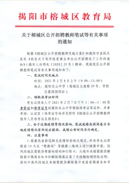 2020年廣東揭陽(yáng)榕城區(qū)公開(kāi)招聘教師筆試等有關(guān)事項(xiàng)通知