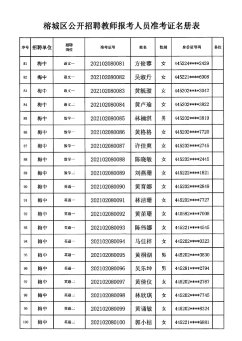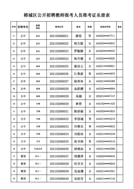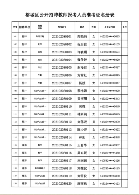 榕城區(qū)公開(kāi)招聘教師報(bào)考人員準(zhǔn)考證名冊(cè)表.xls