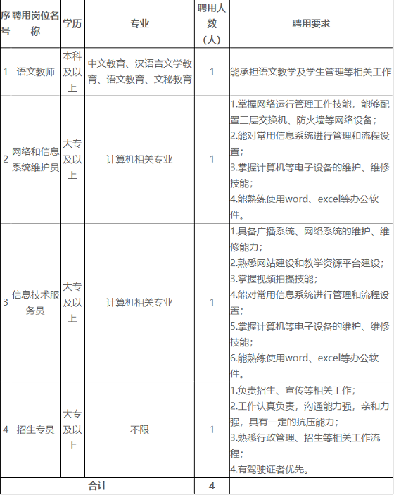 根據(jù)學(xué)校發(fā)展需要,現(xiàn)面向社會(huì)招聘合同制教師,相關(guān)事項(xiàng)公布如下: