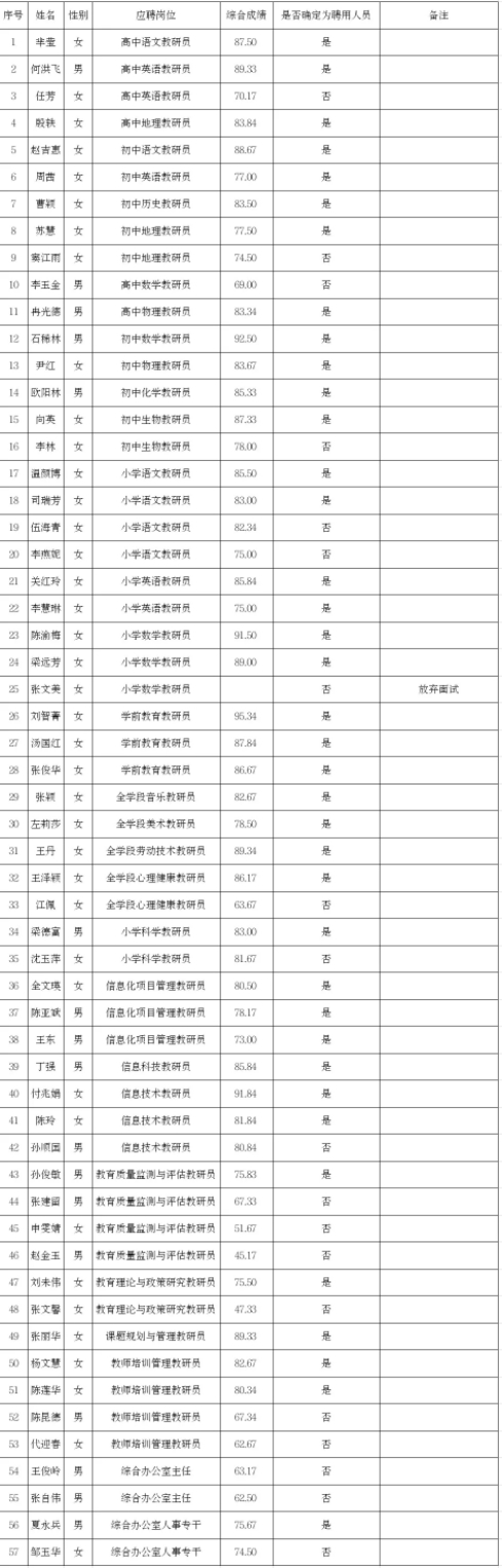 附件:五華區(qū)基礎教育發(fā)展研究院選聘工作人員綜合成績及聘用人員公示名單