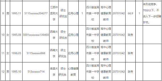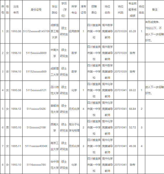 根據(jù)《宜賓市市屬事業(yè)單位2020年下半年公開考核招聘工作人員的公告》,現(xiàn)將宜賓市第一中學校的專業(yè)技能考核成績及排名公布如下: