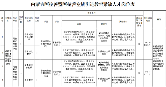 5.本簡章中未盡事宜及有關(guān)信息,將在阿拉善盟人事考試信息網(wǎng)、阿拉善左旗教育體育局、阿拉善左旗12333微信公眾平臺公布,請予關(guān)注。