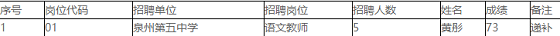 根據(jù)《2021年泉州市直公立學(xué)校專項(xiàng)公開招聘新任教師公告》,現(xiàn)將2021年泉州市直公立學(xué)校專項(xiàng)公開招聘新任教師入圍人員成績(jī)公示如下,公示時(shí)間:2021年2月3日--2021年2月11日。若有疑問,請(qǐng)咨詢0595-22785162。