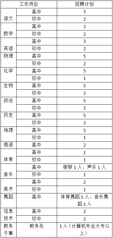初中、高中各學(xué)科教師招聘計(jì)劃如下: