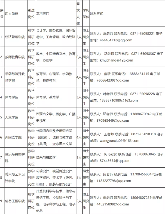 4.學(xué)校引進的高層次人才均為國家正式事業(yè)編制;配偶符合調(diào)動條件的可隨調(diào)并在校內(nèi)安排工作;均可依托學(xué)校申報國家、云南省及昆明市各類人才計劃。