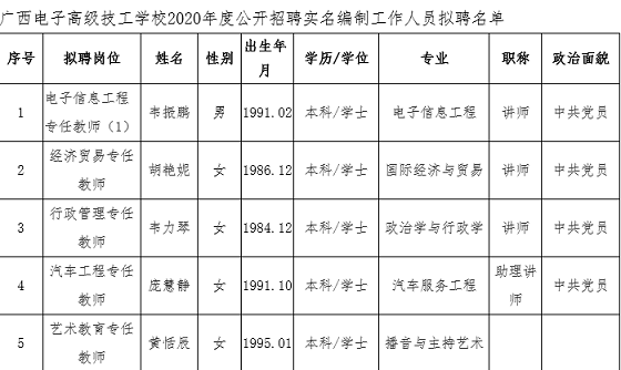 附件:廣西電子高級(jí)技工學(xué)校2020年度公開招聘實(shí)名編制工作人員擬聘人員名單
