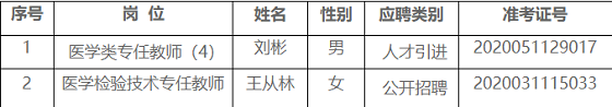 根據(jù)《2020年下半年湘潭醫(yī)衛(wèi)職業(yè)技術(shù)學(xué)院公開招聘公告》和《2020年下半年湘潭醫(yī)衛(wèi)職業(yè)技術(shù)學(xué)院人才引進(jìn)公告》相關(guān)規(guī)定,經(jīng)報名、資格審查、筆試、面試、體檢、考察等程序,現(xiàn)確定劉彬等2名同志為湘潭醫(yī)衛(wèi)職業(yè)技術(shù)學(xué)院2020年下半年公開招聘人員(人才引進(jìn))擬聘用人選,現(xiàn)將情況公示如下: