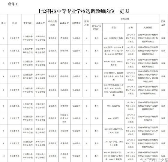上饒科技中等專業(yè)學校是由上饒市人民政府主辦,萬年縣人民政府承辦的公辦普通中等專業(yè)學校。根據(jù)學校教育教學工作需要,經(jīng)研究,決定公開選調10名在職在編教師到上饒科技中等專業(yè)學校任教。現(xiàn)將有關事項公告如下。