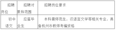 現(xiàn)因?qū)W校工作需要,擬招聘初中語文教師1名,歡迎具備2021年杭州市教師考編資格的應(yīng)屆畢業(yè)生前來應(yīng)聘,具體工作崗位要求與待遇面談。