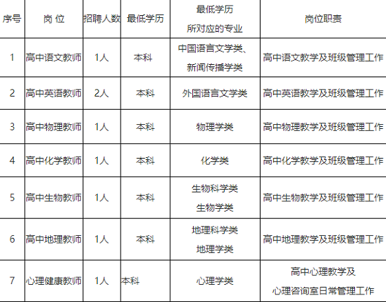 本次擬引進教育部直屬師范大學師范生8名,具體招聘計劃與崗位如下:
