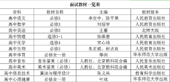 附件:面試教材一覽表