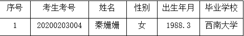 根據(jù)《湖北師范大學(xué)2020年第二批面向社會(huì)專(zhuān)項(xiàng)公開(kāi)招聘專(zhuān)職輔導(dǎo)員公告》要求,因擬聘人員中有女性考生棄權(quán),從報(bào)考同一崗位的人員中依考試總成績(jī)從高分到低分依次遞補(bǔ),報(bào)校長(zhǎng)辦公會(huì)研究同意,確定遞補(bǔ)秦姍姍同志為擬聘人員,現(xiàn)予以公示。
