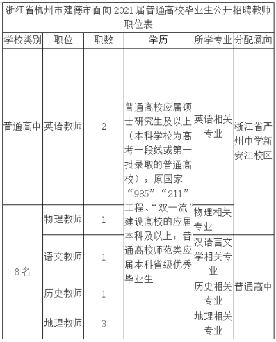 1.《浙江省杭州市建德市面向2021屆普通高校畢業(yè)生公開招聘教師報名表》(見附件);