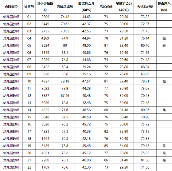 根據(jù)《2021年蘇州幼兒師范高等?茖W(xué)校附屬高鐵新城幼兒園公開招聘教師簡章》,經(jīng)過筆試、面試,現(xiàn)將總成績公示如下:
